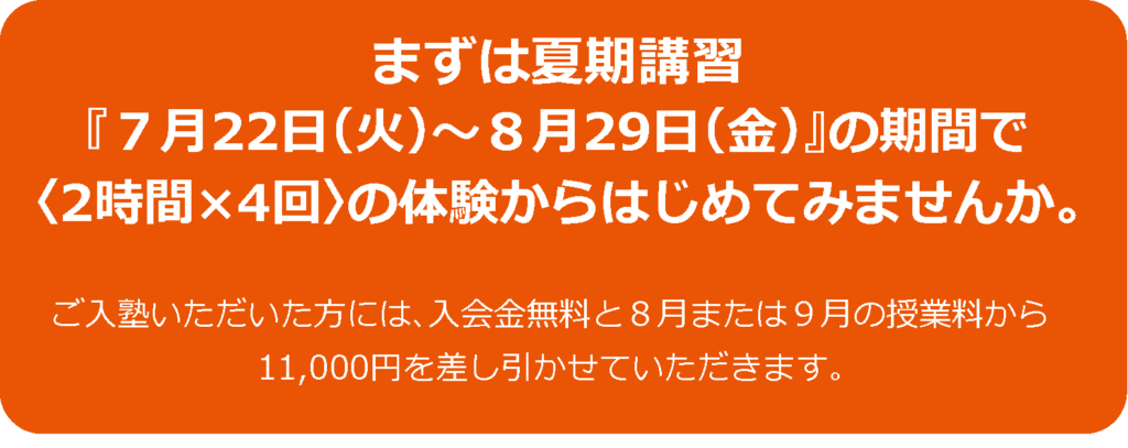 中学生・高校生対象学習 夏期講習無料体験(4回)7月22日㊋スタート!!
